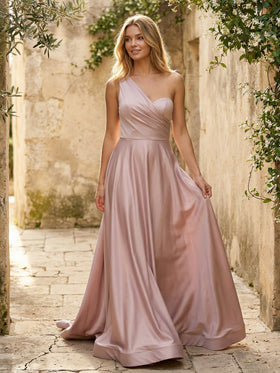 One Shoulder Chiffon Pleated Long Bridesmaid Dresses