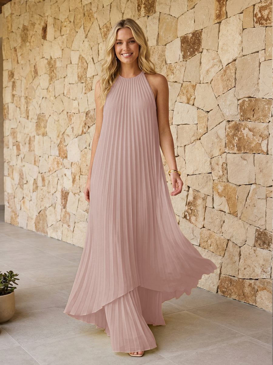 YES1140691 Halter Pleated Chiffon Bridesmaid Dresses A Line Maxi Dresses