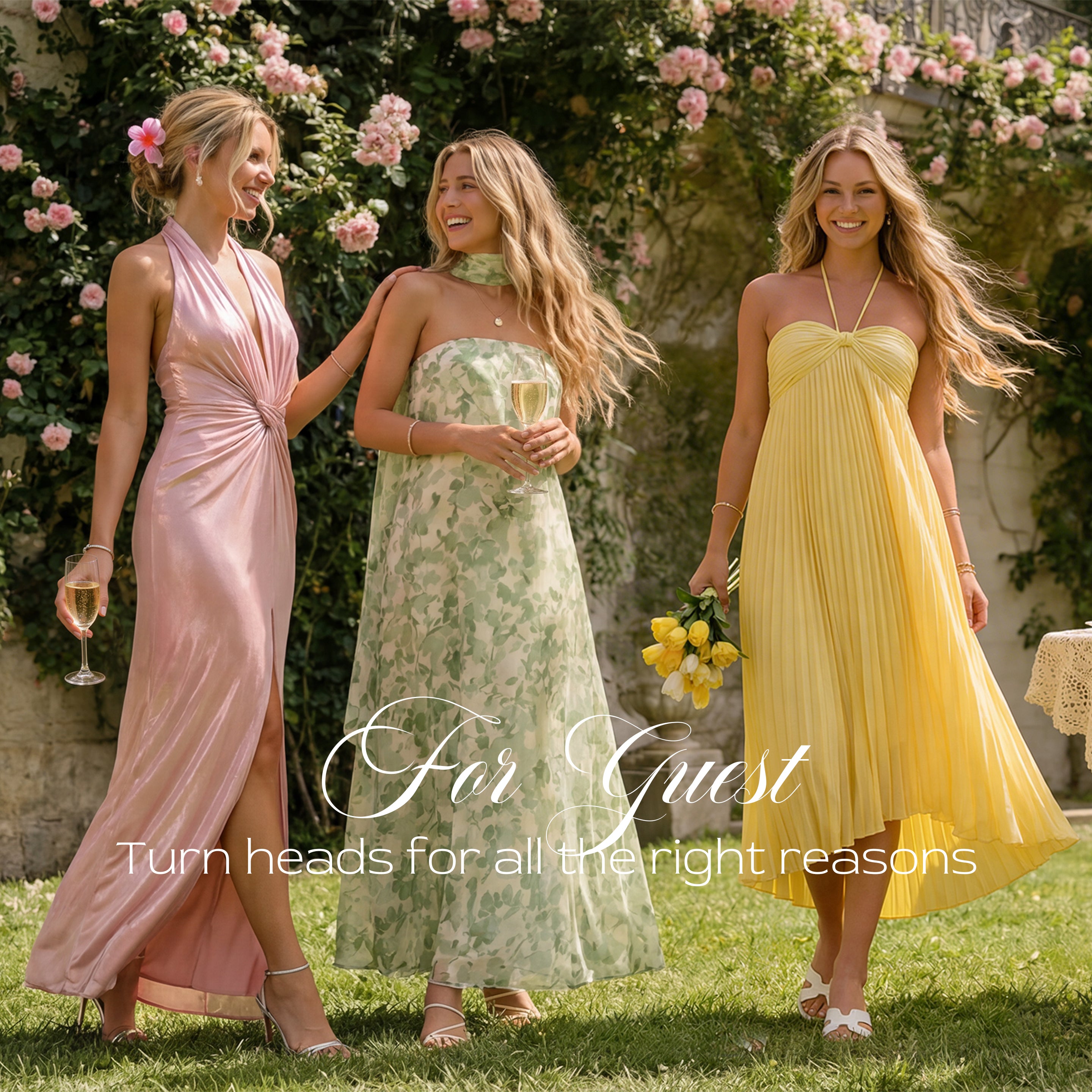 Discover a curated collection of bridesmaid, guest, bridal, and evening wear designed to make every entrance iconic. Style for every story.