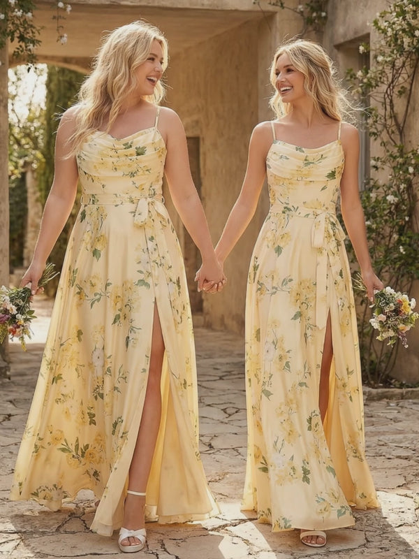 Spaghetti Straps Chiffon Bridesmaid Dresses with Slit