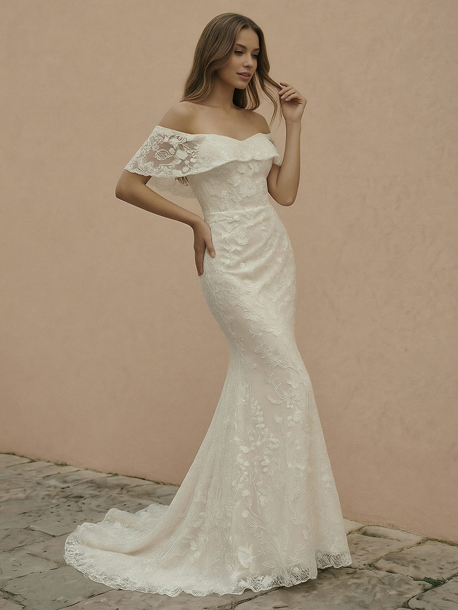YES1180090 Laces Mermaid Off the Shoulder Long Wedding Dresses